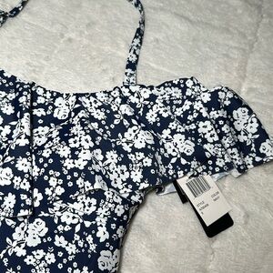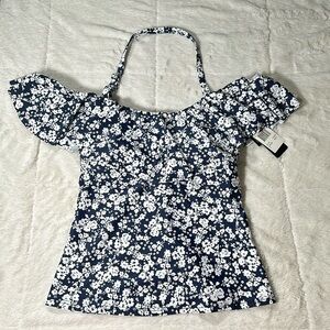 Island Escape Bliss Printed La Flor Floral Ruffled Off-the-Shoulder Swimsuit Swim Top Tankini Top size 6 NEW