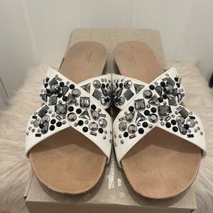 Women’s Crossband Flats Sandals Size 8 Jeweled Stones Embellished Slip On