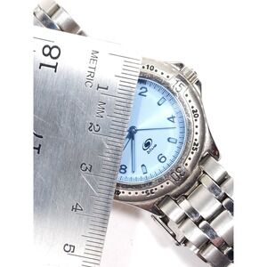 The Fossil Blue Stainless Steel Diver Watch AM-3279 is a stylish and durable timepiece suitable for both men and women. With a maximum wrist size of 7.6-8 inches and a double-locking fold-over clasp, this watch is designed to fit comfortably and securely on the wrist. The watch features a 12-hour, fixed bezel with silver accents, a water-resistant case up to 100 meters, luminous hands for visibility in the dark, and a blue dial with Arabic numerals and stick indexes. The stainless steel case and bracelet, along with the quartz movement, ensure both quality and longevity in this diving-themed watch from the reputable brand Fossil.