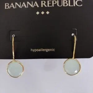 Banana Republic Factory Store Gold Tone Earrings With Aquamarine Colored Crystal