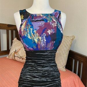 Beautiful EUC Nicole Miller metallic sleeveless ruched cocktail dress, size 0