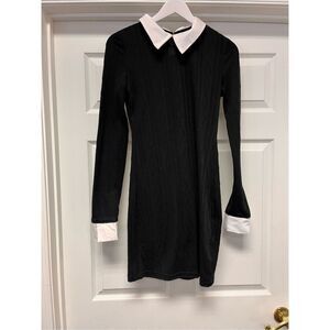 Wednesday Adams Black & White Knit Dress sz M EUC