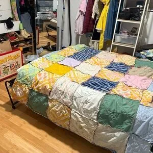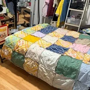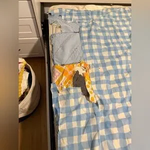 under the blue and white checkered is the back of the original quilt.