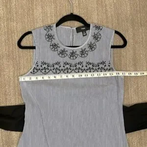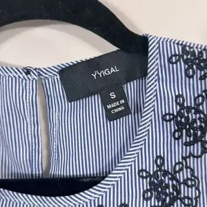 Yyigal Sleeveless Blue White Stripe Cotton Nautical Coastal Summer Dress Embroidered Preppy Tie Waist Women Size Small