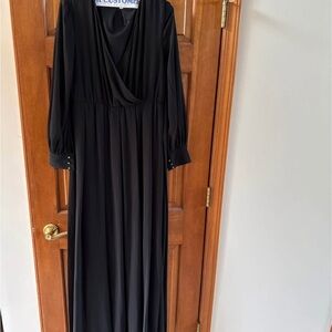 Chic black maxi dress with a flowing silhouette. Perfect for elegant occasions. Worn 1x for a wedding, sheer sleeves, so beautiful on!