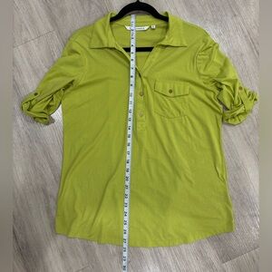 Emily Daniels Chartreuse 3/4 Sleeve 1/2 Button-Up W/Pocket Top Size M