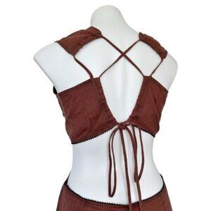 Ganni Bead Embellished Hemp Cut Out Root Beer Brown Midi Dress Size L