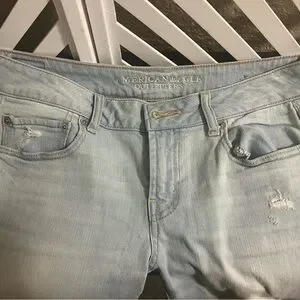 Stylish light blue skinny jeans. Perfect for casual wear. Crafted by American Eagle Outfitters.
