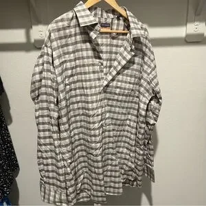 Van Heusen Gray and White Plaid Button Down Shirt.