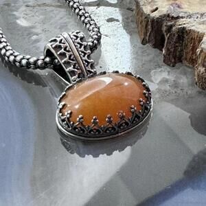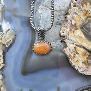 Gorgeous Carolyn Pollack Sterling Silver Oval Carnelian Cabochon Country Couture Unisex Pendant With Necklace.