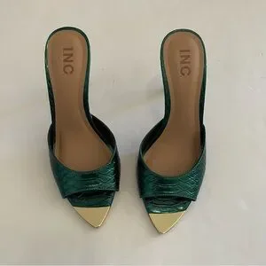 INC Emerald Snake Print Green and Gold Open-Toe Heels Sandals