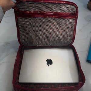 Stylish red quilted bag with paisley pattern. Perfect for travel or daily use.
