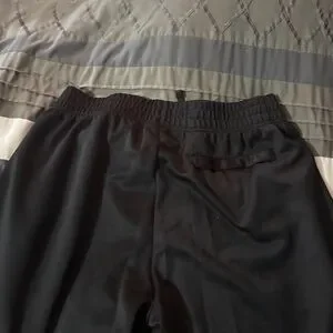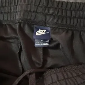 Sleek black athletic pants. Features white Nike logo and stripe accents.
