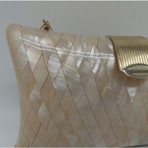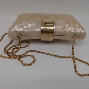 VINTAGE LISETTE Rare 1950s Blush Mother of Pearl & Lucite Clutch Gold Hardware