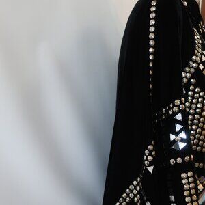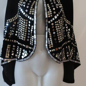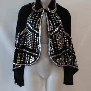 NWT Tina Demel Black Velvet Mirrored Embellished Peter Pan Collar Capelet OS