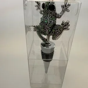 Silver Frog Bottle Stopper with green and black eye stones. Brand New.