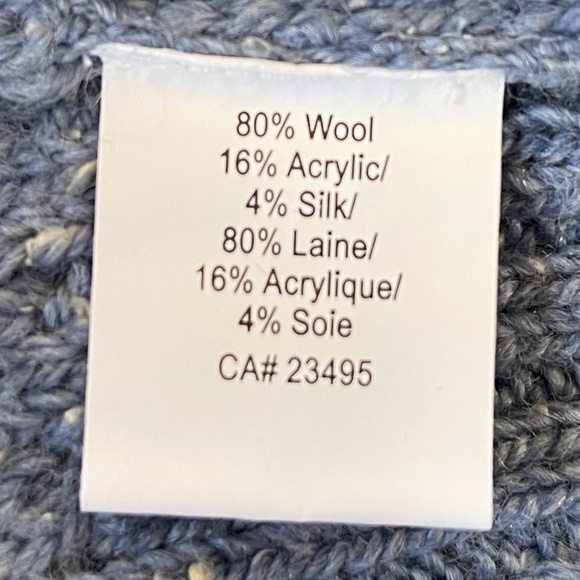 * Fabric: 80% Wool, 16" Acrylic, 4% Silk