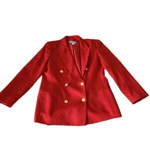 Pendleton Red Wool Structured Double-Breasted Blazer Jacket Gold Buttons Size 8