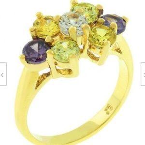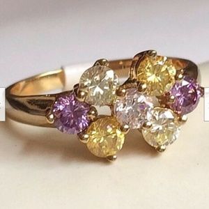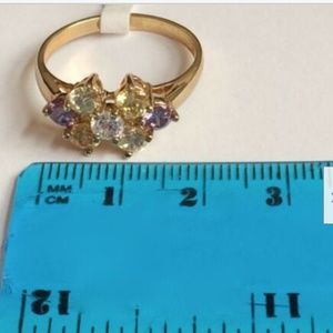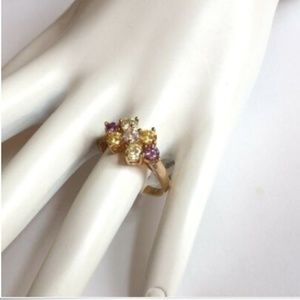 Gold Cocktail Ring Size 9 Amethyst Citrine Yellow Purple Cubic Zirconia Plated