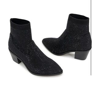 Kenneth Cole Reaction Sparkle Studded Jess Bootie. Pull on stretch heeled bootie with pointed toe.