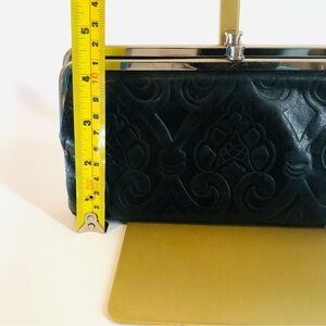 Vintage HOBO Lauren Embossed Leather Clutch in very good condition with wear to leather and frame.