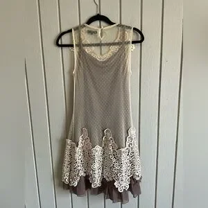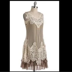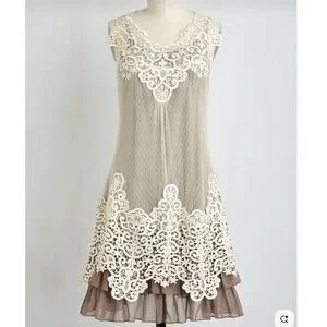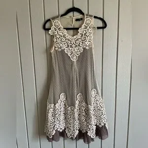 Charming mini dress with intricate cream lace details. Perfect for elegant outings.