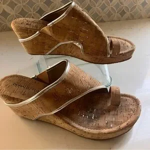 Donald Pliner GYER Upper Heel Wedge Platform Leather Slide Cork Sandals 8.5 M