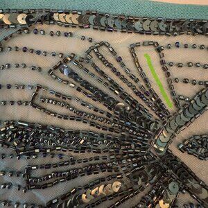 Beads are intact except for one missing row of sequins as shown in last pic. Hard to tell unless you're really studying the pattern! But wanted to note it here as a flaw.