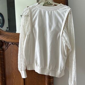 Anthropologie Pilcro white lace and eyelet white sweatshirt. Width 20”. Length 22”