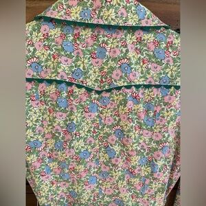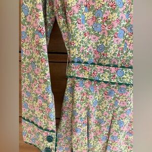 Stylish floral trench coat with a double-breasted design. Features a belt and button details.