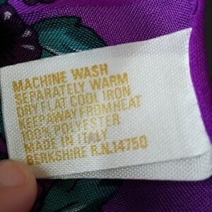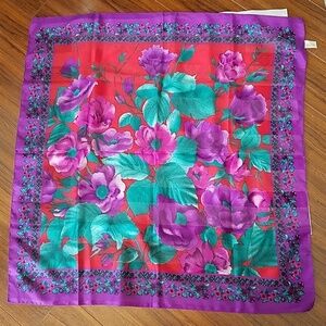 Vintage Berkshire 100% Polyester Purple, Red, and Green Floral Scarf. Made in Italy.