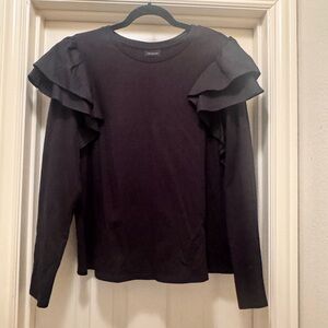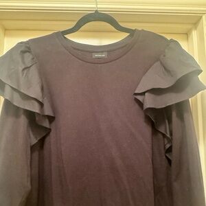EUC Who What Wear Black Ruffled Long Sleeve Top Size XL