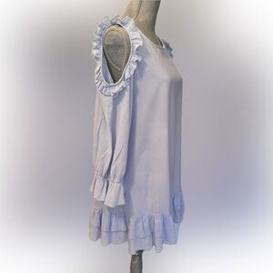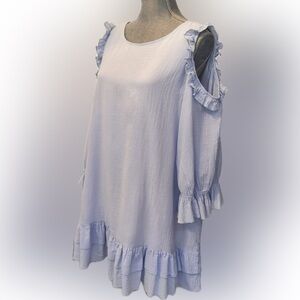 PAISLEY VINE Powder blue shoulderless long sleeve dress! Ruffles galore Excell L