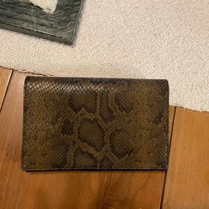Stylish snake print clutch. Features a sleek design. Perfect for any occasion.