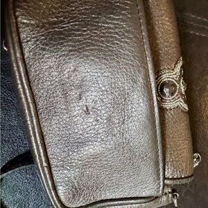 Stylish Brighton Anju metallic crossbody bag with intricate embellishments. Perfect for adding a touch of elegance to any outfit. Approximately 6 x 4 x 2. Very small crossbody purse. Very little wear. Some indentations seen from being stored. Not sure if they will work out. See images for details. Smoke free home