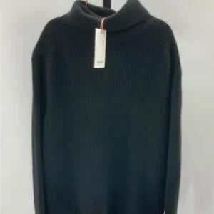Sleek and versatile black cashmere sweater. Ideal for layering or solo wear. Soft fabric ensures comfort.