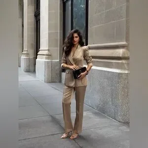 Chic “mink” color satin blazer and pants by Zara. Double-breasted blazer with matching trousers. Ideal for formal events. Never been worn. Perfect condition.