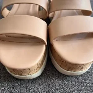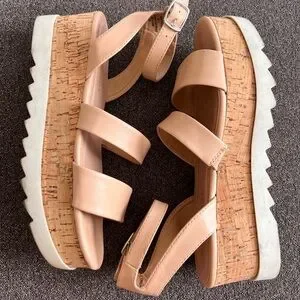Stylish Madden Girl espadrilles. Tan straps with cork platform. Comfortable and chic.