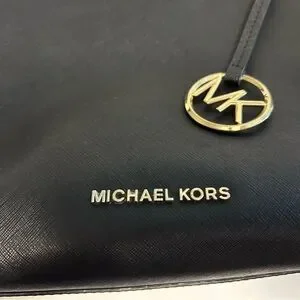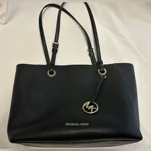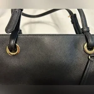 Michael Kors Black Gold Tote Handbag Women’s Purse Leather Walsh Mk Zipper