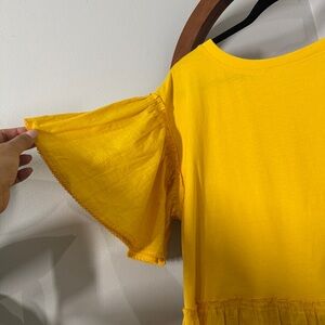 MEDIUM mustard yellow babydoll top from anthropologie. Flare sleeve. Mixed fabric, 100% cotton. Slightly oversized. In great preloved condition, like new. Thank you for visiting my closet and supporting a small business. Check out the rest of my closet for similar styles and sizes! Bundle three items and save 15%