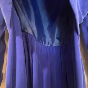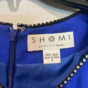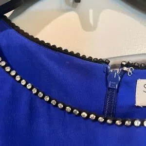 Vintage rhinestone scoop neck bright blue silk dress. Gorgeous color!