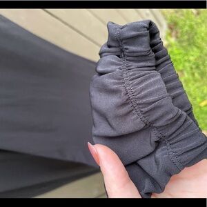 Tapered legs with elastic cuffs and three-quarter sleeves style a chic and sophisticated jumpsuit in a bump-friendly fit.