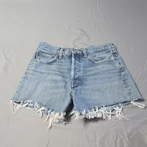 Agolde Sz 27 Classic Light Blue Women's Frayed Jean Shorts