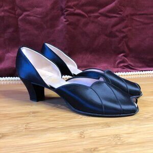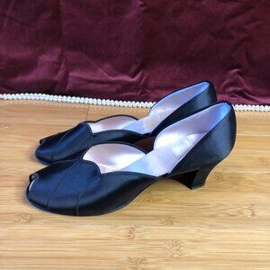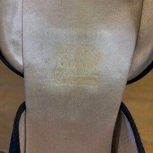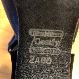 Made by 'Comfy', the name says it all. You can tell these have only been worn indoors, if they were worn at all. Luxurious shining beautiful black satin with delicate baby pink lining the inside. They fit me (size 9 and wee bit wide). These are stunners!