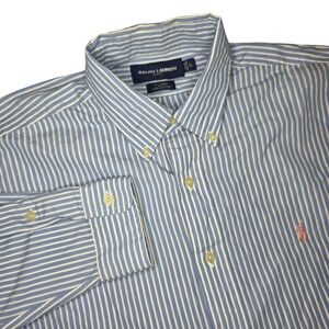 Keywords: Ralph Lauren, Golf, Tilden, Button Down Shirt, Long Sleeve, Striped, Blue, White, Casual, Mens, Large, Preppy, Classic, Dress Shirt