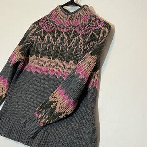 Anthropologie Josephine Mock Neck Sweater Wool Blend Petite XS Italy Gray/Pink Long Sleeves