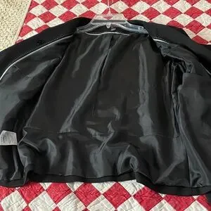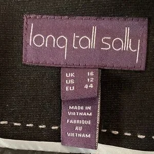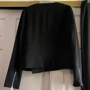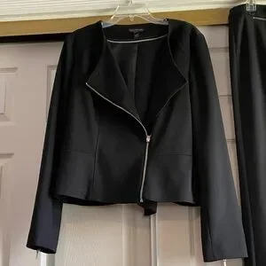 Chic black pantsuit by Long Tall Sally size 12. Features sleek zipper accents. Perfect for professional and formal occasions or interviews. Inseam approximately 34”.