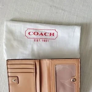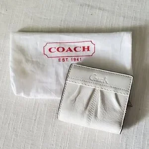 Chic Coach mini wallet in off white leather. Sleek and functional design. one small spot on front as shown in photo. Dust bag included.