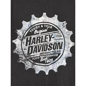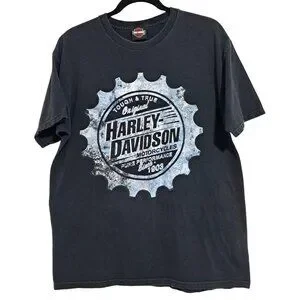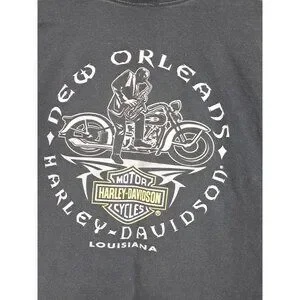 This Harley-Davidson T-shirt, featuring a 2010 vintage New Orleans design, is a must-have for motorcycle enthusiasts. Its classic fit and durable cotton fabric offer comfort and style, while the bold graphics reflect Harley-Davidson's iconic spirit. Estimated size large as there is no size tag.