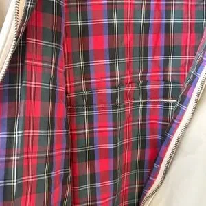 Super cool vintage jacket. Good overall condition. Men’s size large. Smoke free environment. Plaid inside. Pockets. Pictures have lots of detail details.